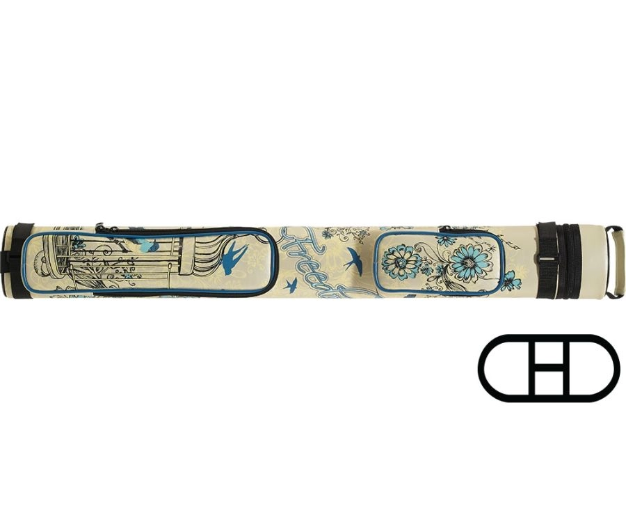 This Athena pool cue case is delicately designed with flowers and blue birds effortlessly flying about with “Freedom” embroidered between the two accessory pockets. Â The case holds 2 pools cues and comes with an upper handle and an adjustable shoulder strap.