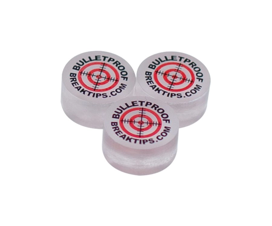You can finally have it all with this clear, Bulletproof break tip! It scuffs and holds chalk like a leather tip while having the hardness and power of a phenolic tip.