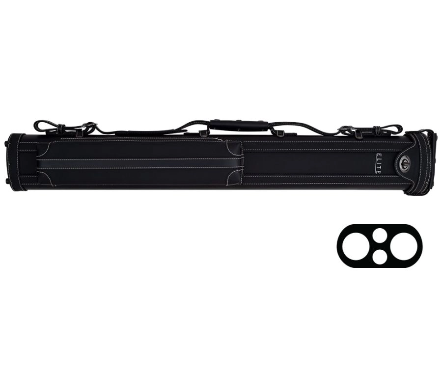 Made of black vinyl and white stitching with all black hardware this case looks sweet. It has carrying handle on the top and side and a shoulder strap.