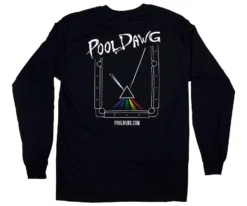 This varsity inspired hoodie features a black torso with pink arms, hood, pocket liners and drawstrings. The pink really pops with the white logo on the arm and black rings around the wrists. This is made of polyester so not only will it help keep you dry, but it’ll hold up against wear and tear longer than cotton. The billiards industry could use some more pink and this is a perfect start!
