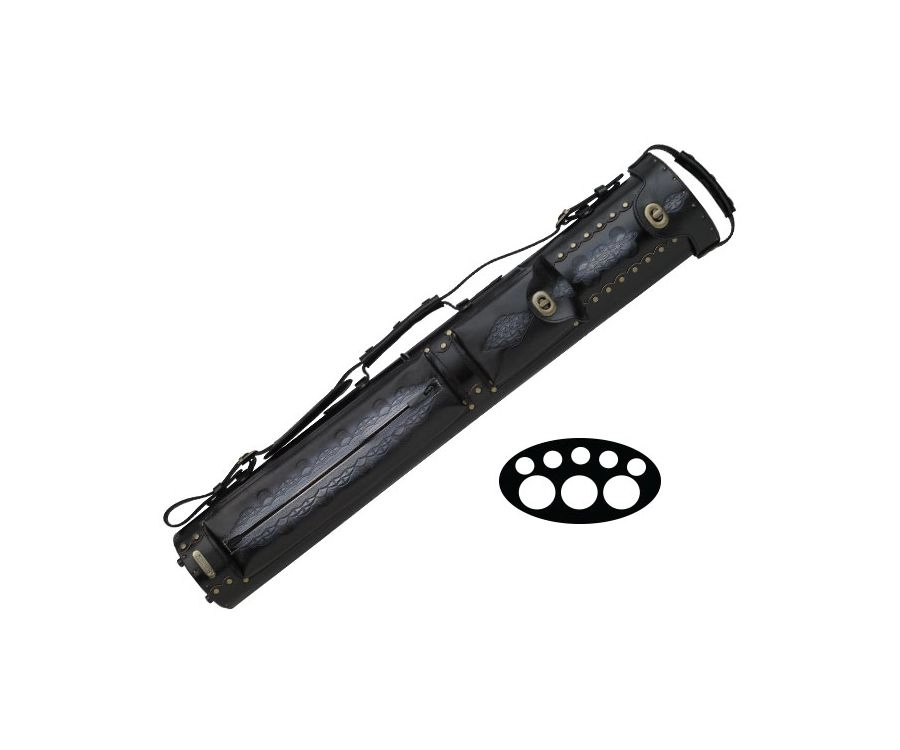 This Instroke Tooled pool cue case is a large case with extra care given to the cue carrying quality. The tubing on the inside of the case is constructed from lightweight unbreakable PVC, padded with foam, and then lined with soft, tricot, moisture resistant lining. This creates a very safe and comfortable ride for your cues.