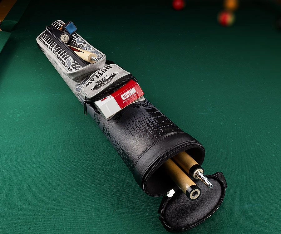 The new OLB22G hard case from Outlaw will hold two full cues and can also fit your jump handle in the longer pocket and a smaller pocket designed for your smaller accessories. There is something ironic about this case being able to hold two cues as there are two eagles that are embroidered on the case, which appear to be wrapping themselves around the case – protecting your precious cargo inside. The detailed eagle head on the top pocket is keeping a watchful eye over your cues and keeping the enemies at bay.Â