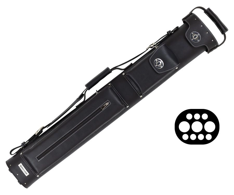 The Tango Zonda has all the same great features of the MKT cases, like a one-piece body, reinforced lid with one-piece top handle, and extra-strong zinc alloy hardware, but is made from premium Argentinian artificial leather! The Zonda is available in black, and has a hi-cast Italian finish, making it the best looking and feeling artificial leather case we’ve ever had! The Zonda has plenty of room for accessories and jump handles, with a flip-top, zippered upper pocket and a large lower pocket with separate sleeve for a jump butt! The interior of this case features 10 extra-soft velvet lined tubes, 3 for butts and 7 for shafts.